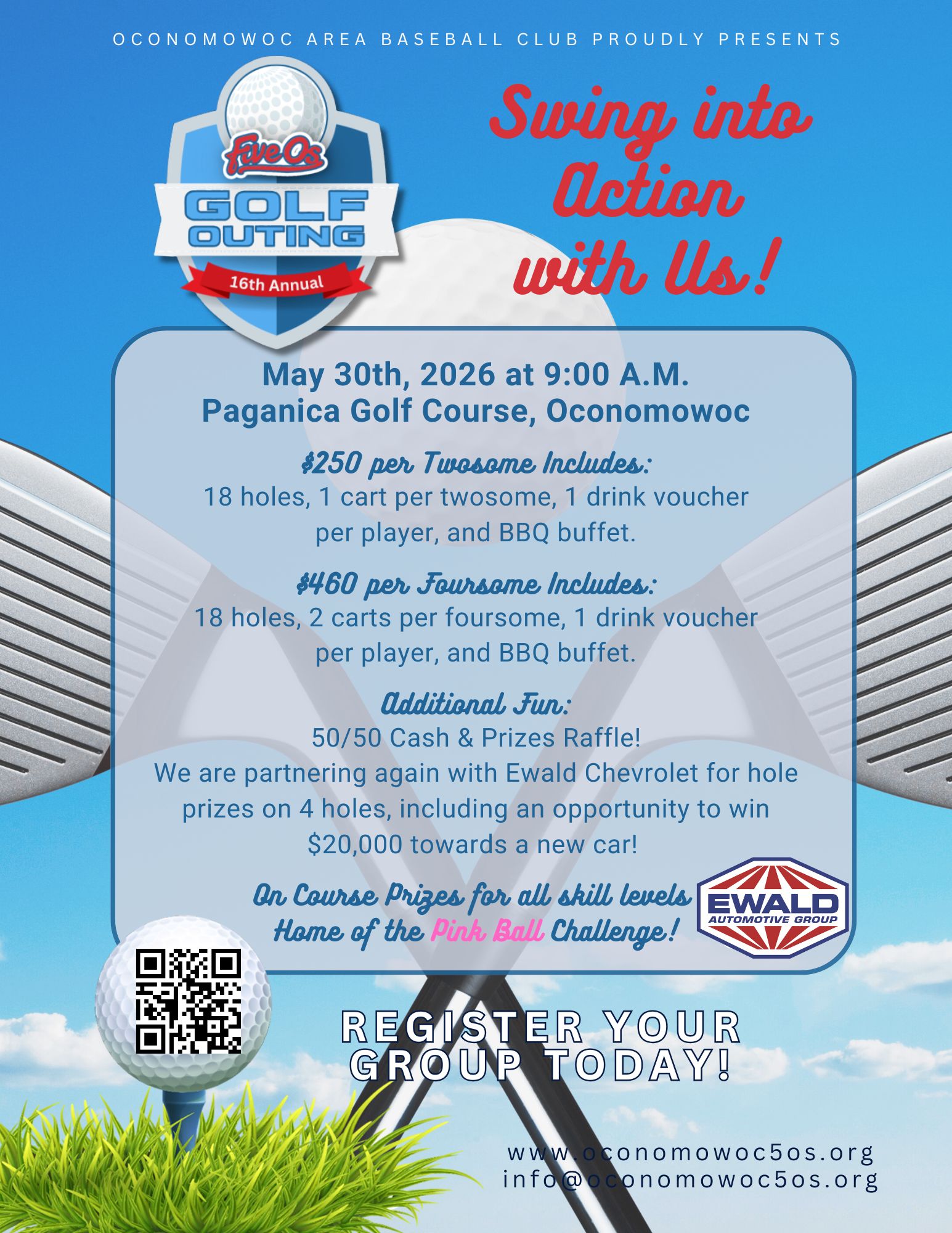Grab your clubs and join us for a fun-filled day on the course supporting the Oconomowoc Area Baseball Club!