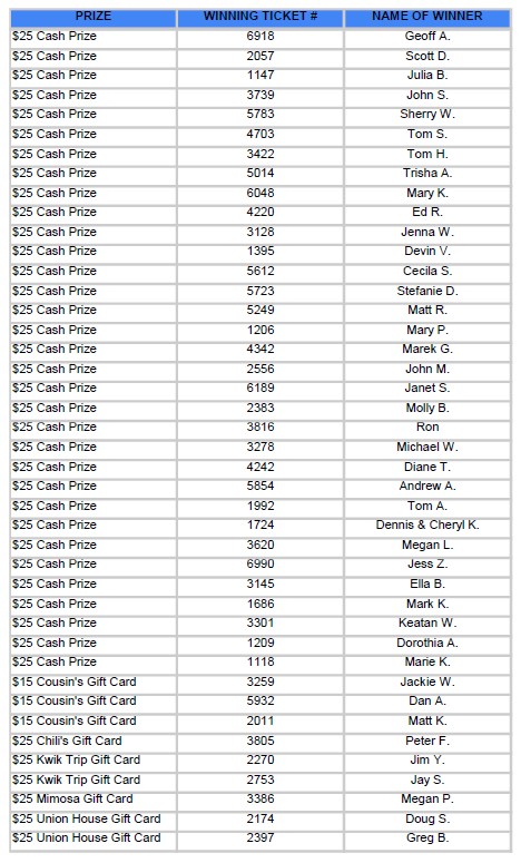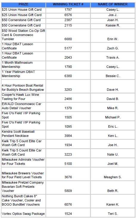 Reach out to your player or team coach to help coordinate prize delivery.Otherwise please pickup at Cornerstone on March 9th from 6:00PM to 8:00PM.List of winners: