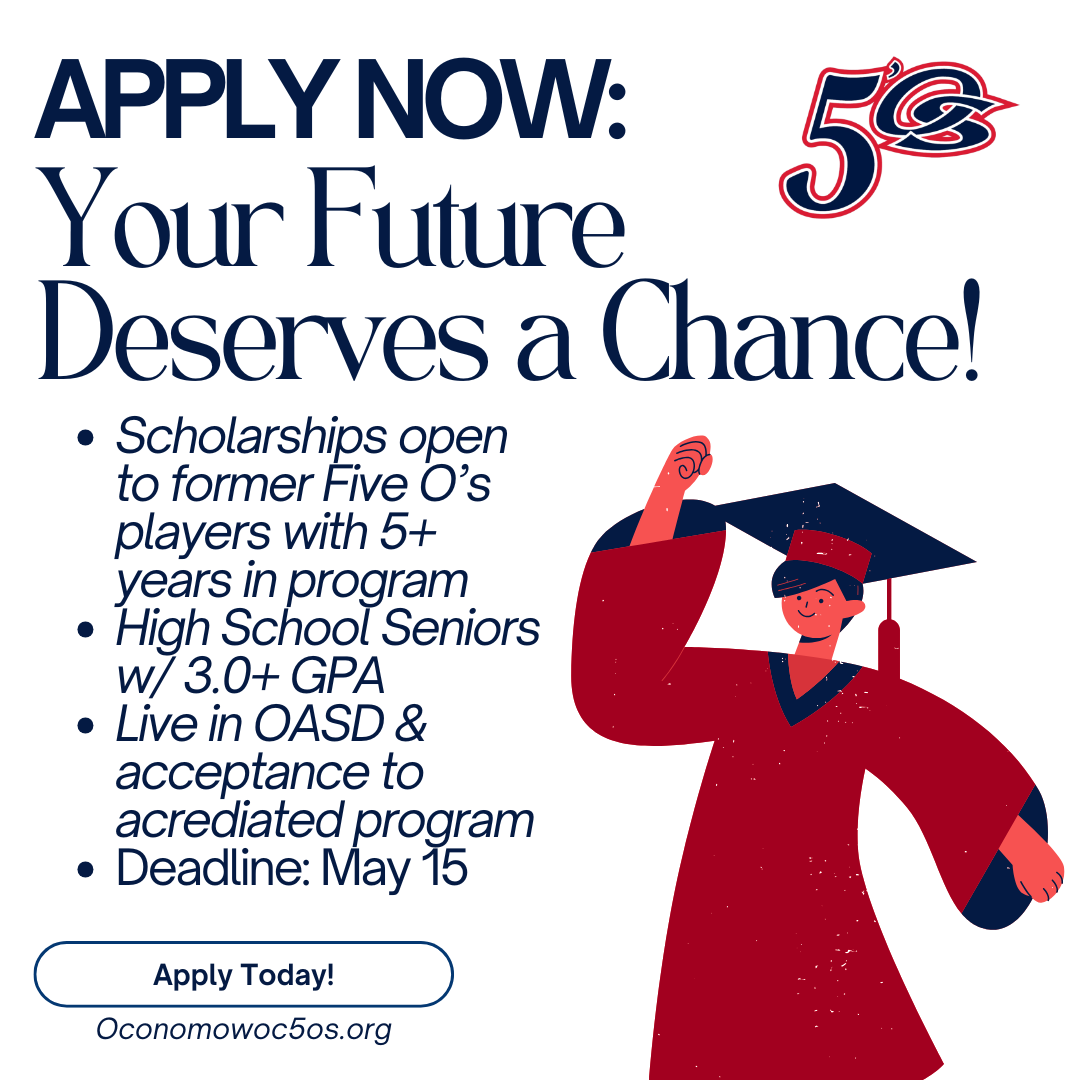 For the efforts our boys and girls have put into the Five O’s over the years, the OABC is pleased to offer scholarship opportunities for the most outstanding individuals as they approach the end of their senior year in high school. Each year, former players can earn one of two $1050 scholarships as they prepare for college. These scholarships are awarded to one former baseball and one fastpitch player annually.